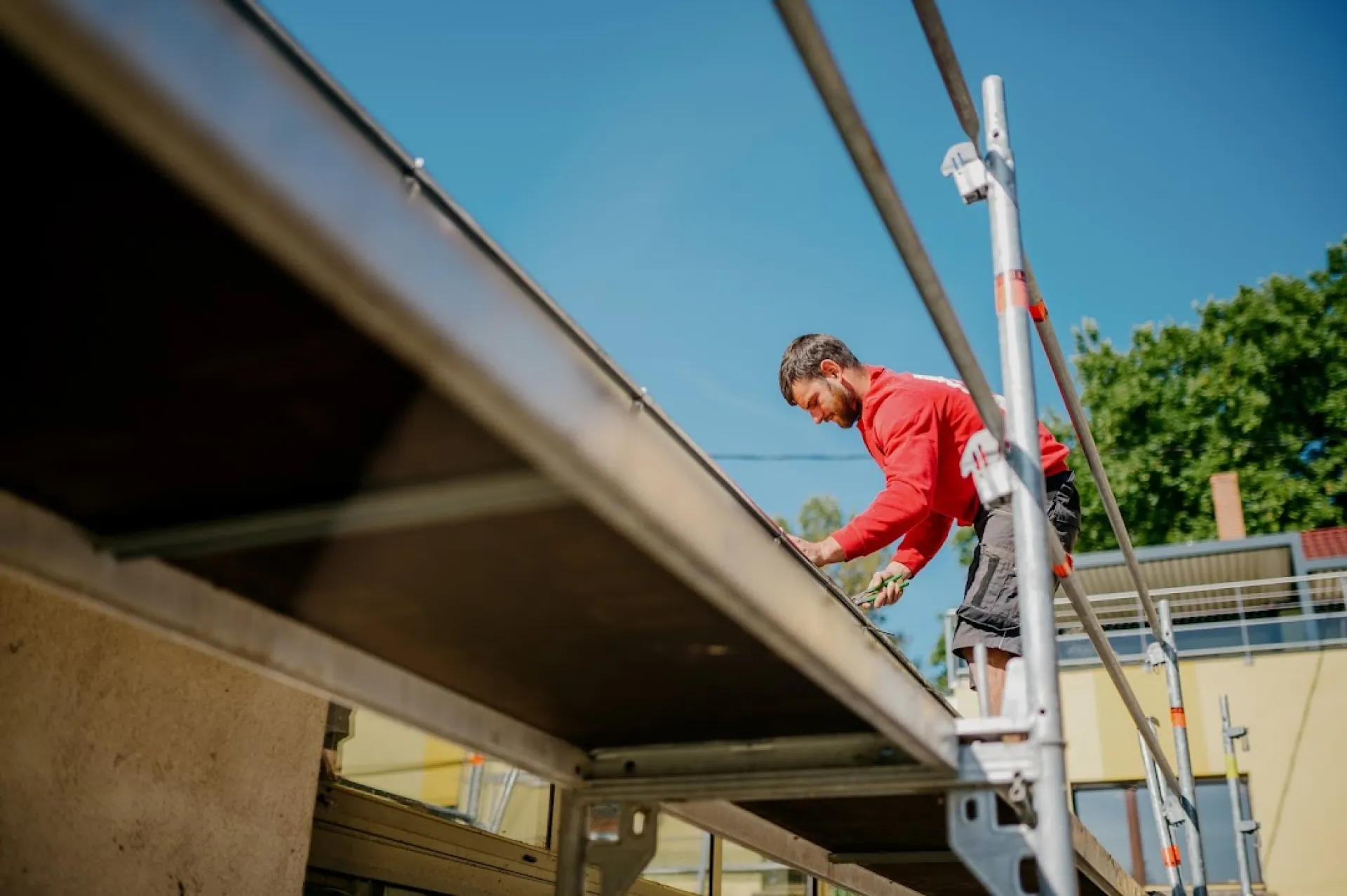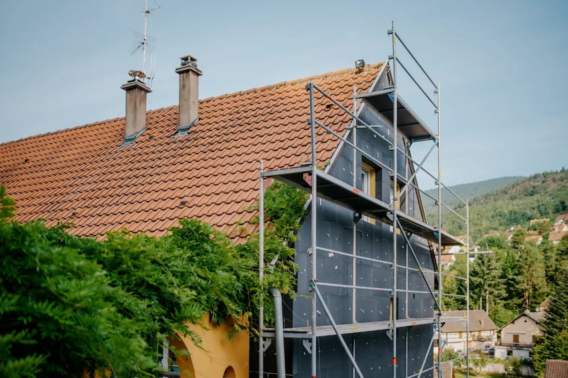 Couverture & zinguerie (≈50 %) : rénovation complète de toiture, tuiles/bac acier, sarking pour une isolation par l’extérieur performante, étanchéité et charpente (traitements, renforcements). ITE & façades (≈20 %) : isolation thermique par l’extérieur en laine de roche, polystyrène ou fibre de bois, ravalement de façade et finitions durables, avec accompagnement aux aides de l’État. Menuiseries extérieures (≈15 %) : fenêtres PVC/alu, portes d’entrée sécurisées, baies coulissantes et volets motorisés, sur mesure et posés dans les règles de l’art. Location camions grues (≈15 %) : camion-grue avec chauffeur pour levage, accès difficiles et petites maçonneries. Nos expertises toiture, ITE, façades, menuiseries et grues à Strasbourg s’appuient sur nos qualifications RGE et garantie décennale.
